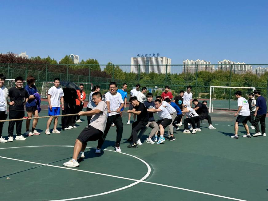 运动会包括集体跳绳、拔河等项目。赛场上,选手们精神饱满、斗志昂扬。集体跳绳比赛中,队员们配合默契,绳子在空中快速飞舞,尽显青春活力;拔河比赛紧张激烈,双方队员齐心协力,奋勇拼搏。