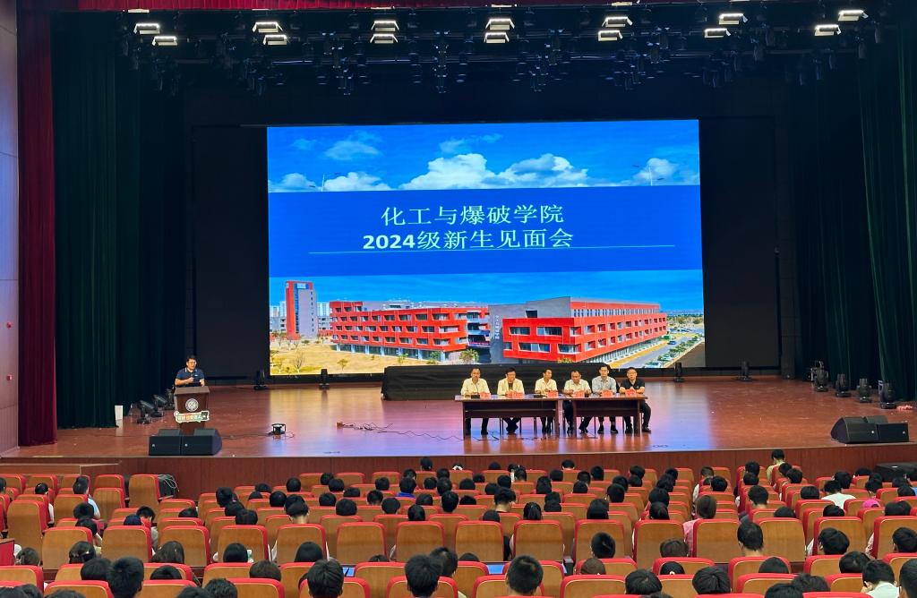 9月30日上午,化工与爆破学院2024级新生见面会在大学生创新创业会议中心举行。学院党委书记徐泽绵,副院长(主持工作)汪泉,副院长张中标、胡劲松,优秀校友、华东理工大学博士生导师王义明研究员,各系主任、教师代表、在校生代表、2024级本科新生参加见面会。会议由学院党委副书记曹秀军主持。