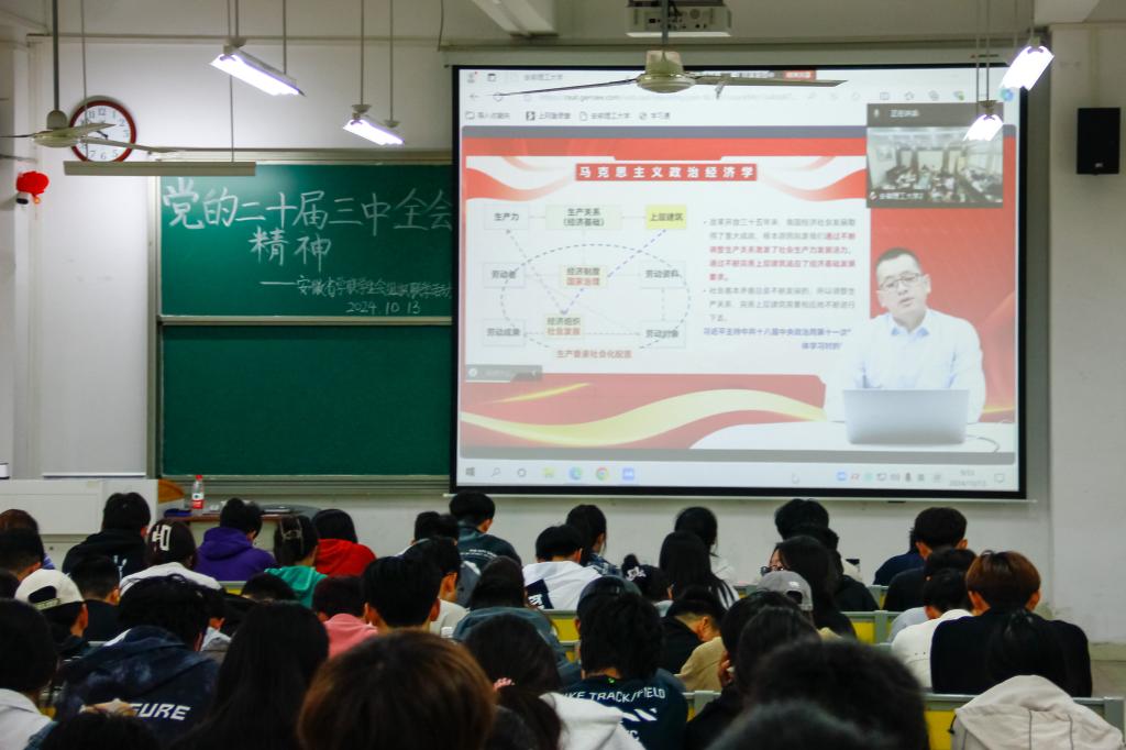 此次联学活动紧密围绕党的二十届三中全会精神,由中央党校(国家行政学院)阎荣舟进行线上授课。阎荣舟回顾了我们国家尤其是进入新时代后的发展历程,深入剖析了当前国内外形势下我国所面临的机遇与挑战,详细阐述了党的二十届三中全会在全面建设社会主义现代化国家新征程上的重要意义和地位,强调了当代青年肩负着重要的历史使命,应当以会议精神为动力,勤奋学习,练就过硬本领,提升自身素质,为全面建设社会主义现代化强国贡献青春力量。