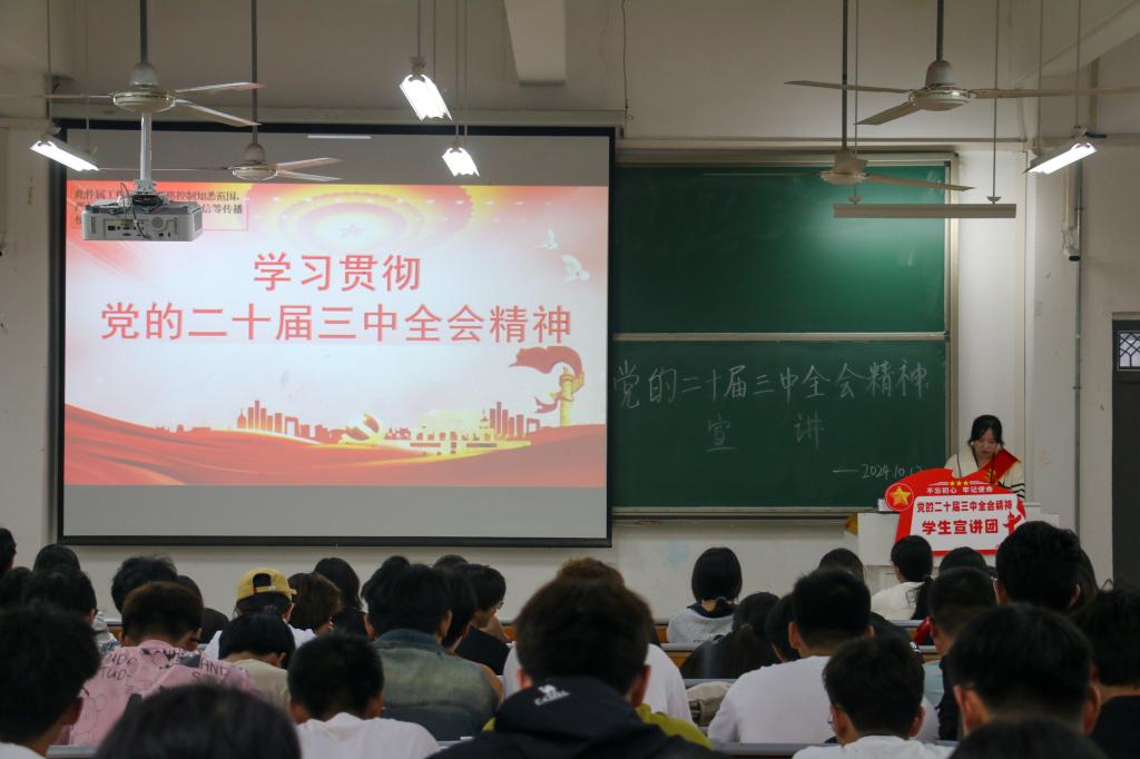 为深入学习贯彻党的二十届三中全会精神,进一步加强青年学生思想政治引领,引导广大青年学生在学思践悟中凝聚奋进力量,10月13日下午,校团委组织17个学院1298位青年学生代表在天工101、102、103等6间教室同步开展学习贯彻党的二十届三中全会精神宣讲会。本次宣讲会由6位校党的二十届三中全会精神学生宣讲团成员主讲。