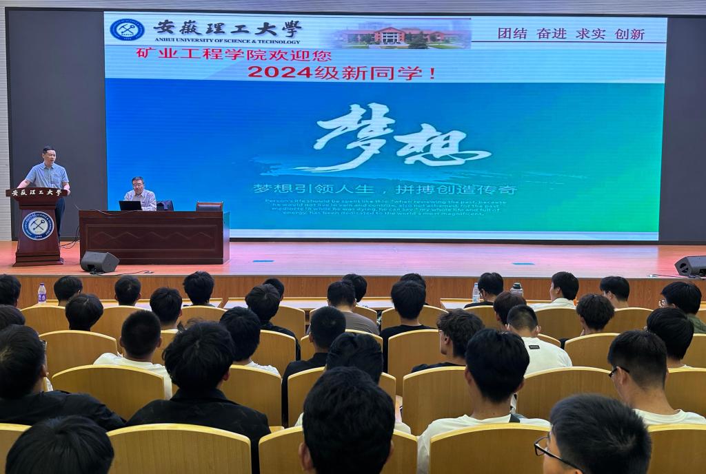 10月12日下午,矿业工程学院在舜耕会堂举行2024级新生主题教育报告会,学院关工委常务副主任张勤春为新生作“梦想引领人生,拼搏创造传奇”主题报告。学院党委副书记田秋实主持报告会,学院师生近300人参加报告会。
