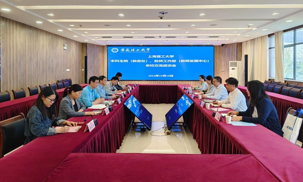 10月15日,上海理工大学本科生院副院长、教务处副处长章国庆,教师工作部副部长、教师发展中心主任童元伟一行5人来校交流,学校教务处处长、招生办公室主任王成军接待了来宾一行,双方在舜耕苑二楼会议室举行座谈。