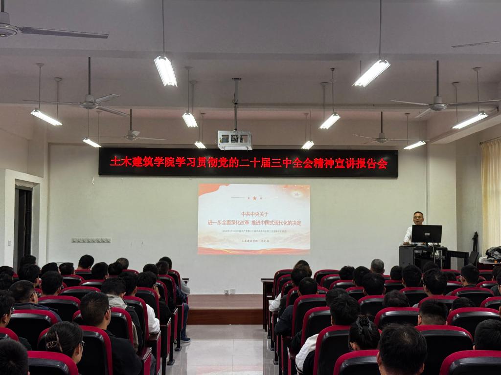 为深入学习贯彻党的二十届三中全会精神,加强党员的集中学习教育,10月18日,学院党委书记冯定昌为全体党员师生作党的二十届三中全会精神宣讲报告。
