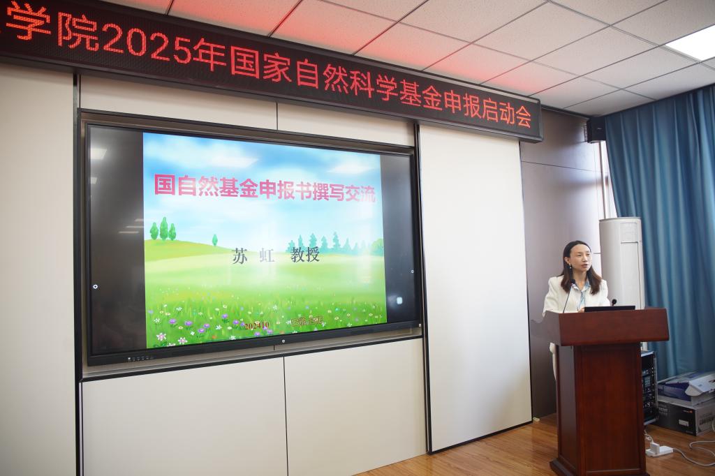 苏虹教授以《国自然基金申报书的撰写交流》为题作报告。她详细解读了申请书各个撰写提纲的写作要点,同时分享了一些实用的写作技巧和方法。她鼓励现场参会人员多阅读优秀的申报书范例,学习他人的写作经验和技巧,并结合自身的研究兴趣和专长进行创新研究。最后,她强调了团队合作的重要性。一个成功的研究项目往往需要多个学科领域的参与人共同合作完成。因此,在撰写申报书时,要充分考虑团队成员的专业背景和能力特点,合理分工协作,共同推进研究工作的顺利进行。