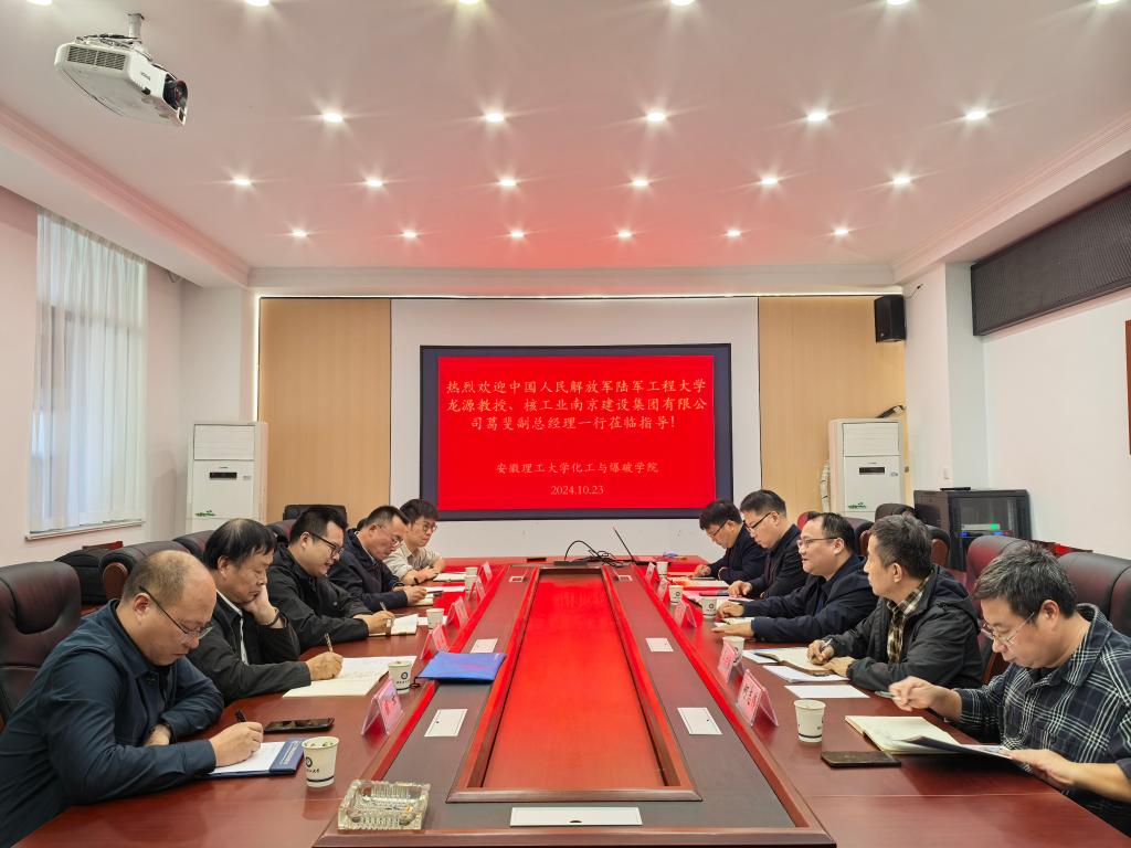 龙源对化工与爆破学院的热情接待表示感谢,他指出安徽理工大学化工与爆破学院、核工业南京建设集团有限公司和南京君缘科爆工程技术有限公司三家单位可以在重大科研项目、省部级科技奖申报、平台建设及人才培养等方面开展深度合作,产出标志性成果。葛斐和姜楠分别介绍了各自公司的情况和与化工与爆破学院开展深度合作的意愿。