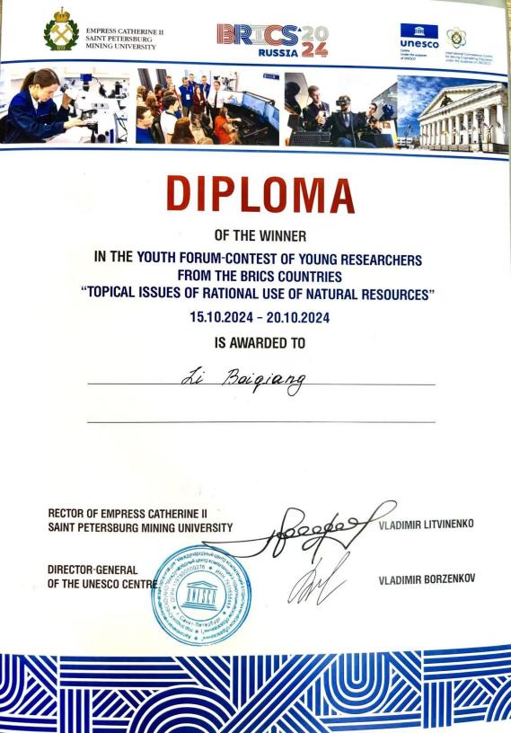 10月15日至20日,由圣彼得堡矿业大学主办、中国矿业大学协办的“矿产资源作为国家主权的基础——人才与创新环境”国际论坛及“自然资源合理利用的热点问题”金砖国家青年学者论坛在俄罗斯圣彼得堡成功召开,地球与环境学院青年教师李百强博士和许成成博士参会,与国际同行开展学术交流。