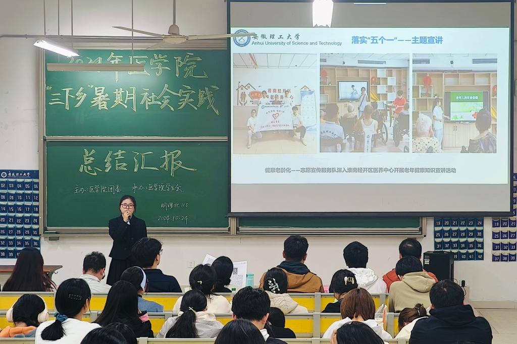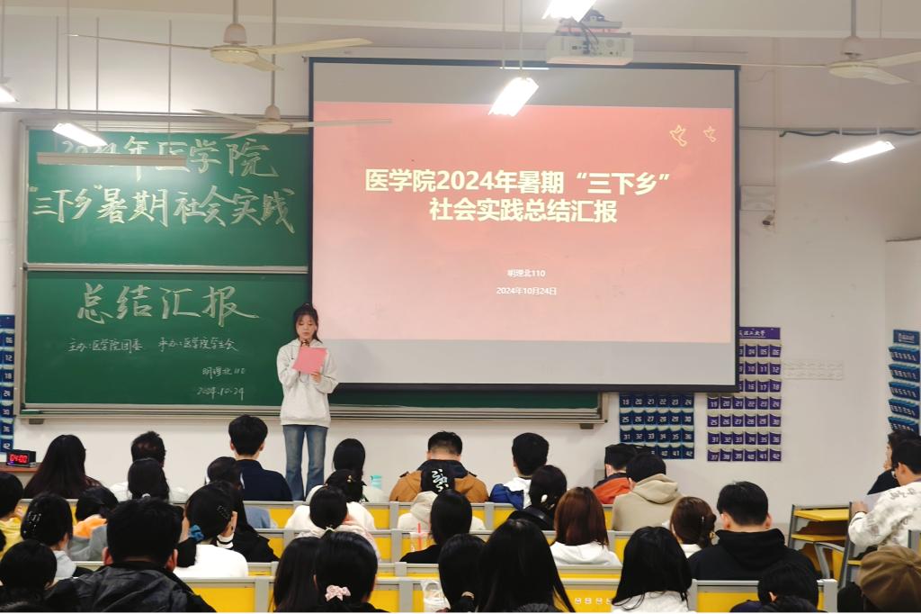 为深入总结暑期社会实践活动的经验与成果,积极传递学院青年学子服务基层发展与助力乡村振兴中展现的青春力量,10月24日晚,医学院团委在明理北110教室召开暑期社会实践汇报会。医学院辅导员、120余名学生现场参会。