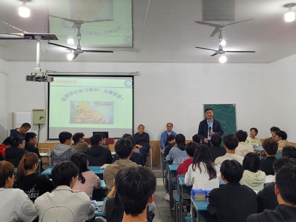 在教学区,学院邀请钱守荣、宋珍炎两位退休教授给实习学生讲授实习意义及区域地层概况、区域大地构造、岩石矿物判断方法,鼓励学生珍惜一个月的实习时间,以“下马观花”的态度深悟细学,为以后的科学探索奠定基础。同学们就野外实习、报告撰写等问题向老教授提问。