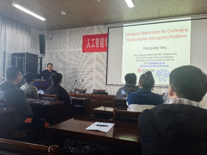 课堂上,杨圣祥教授以“Intelligent Optimization for Challenging Transportation and Logistics Problems”为主题,深入剖析了以人工智能技术为主导的智能管理系统服务于露天大型矿场的研发进展以及实际应用前景,并针对人工智能如何服务于实际生产、生活与学生进行了广泛的交流。杨圣祥教授严谨的治学态度、渊博的学识以及独辟蹊径的授课方法受到学生一致好评。