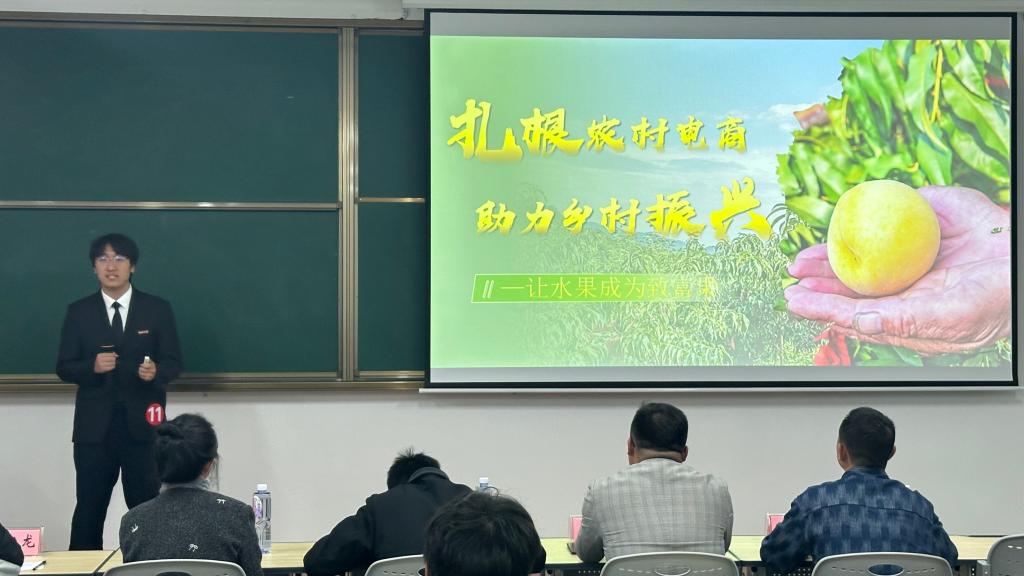 经过初赛的简历筛选和笔试,共有12名优秀选手进入总决赛。在决赛中,选手们根据抽签顺序依次上台进行个人简历展示与现场模拟面试。交通工程师、人民教师、地质勘探工程技术人员、C++工程师、农村电商……每项职业都是选手们经过专业剖析并结合未来规划思考后的选择。在PPT展示环节,选手们根据竞聘的职业岗位,分别从自我认知、职业分析、未来规划等方面阐述自己的职业选择,充分展现对工作岗位的认知和个人的竞聘优势。在现场模拟面试环节,评委根据选手的职业意向及个人能力,从岗位认知、工作能力提升以及未来规划等方面进行现场的面试提问,同时对PPT制作、演讲汇报技巧等方面进行细致的指导和点评,现场气氛热烈。