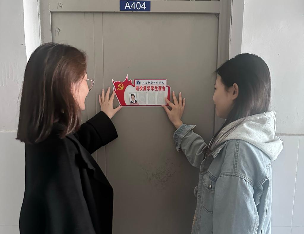 周雪晴强调了开展本次活动的重要意义,指出特色宿舍挂牌是推进学院“一站式”学生社区综合管理模式建设的实践,同学们要发挥模范带头作用,学生党员要时刻铭记党员身份、展现先锋形象,退役复学学生要主动亮明身份、退伍不褪色,继续保持军人的优良传统。