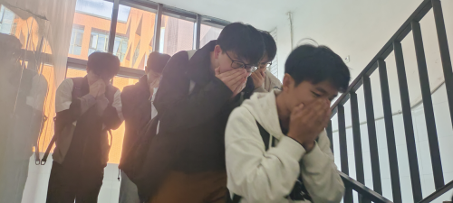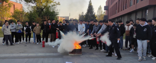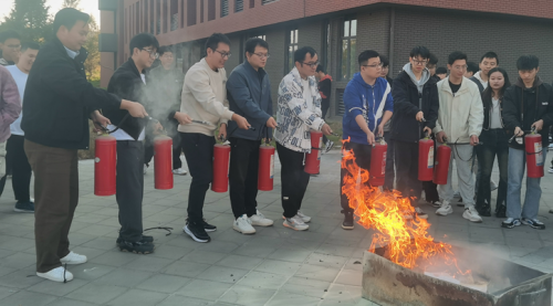 在疏散逃生演练环节中,模拟火情发生时,师生在最短时间内有序地撤离到安全地带。最后进行了灭火器实操演练,每位参与人员都亲自操作灭火器,扑灭模拟火点。
