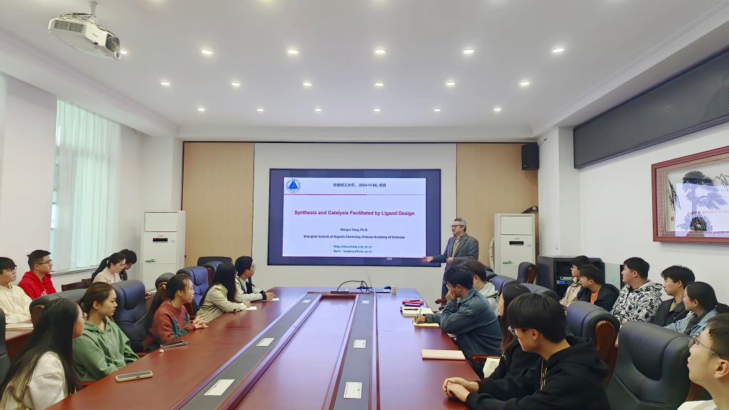 11月8日,应化工与爆破学院邀请,中科院上海有机化学研究所汤文军教授在崇礼楼东103报告厅作了题为《高效催化促进药物绿色制造》的学术报告。院党委副书记、副院长(主持工作)汪泉、相关专业教师及研究生50余人参加了报告会,学院副院长胡劲松主持本次会议。