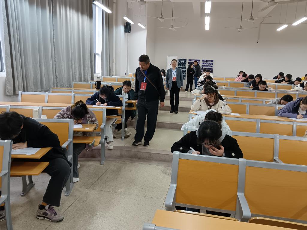 数学与大数据学院副院长耿显亚、教务处负责人陪同来自中国科学技术大学的吴健副教授、郑业龙副教授全程巡考了竞赛的各个考场。整个竞赛过程中,考场纪律严明、秩序井然,参赛的各位学子认真答题,赛出了风格和水平。
