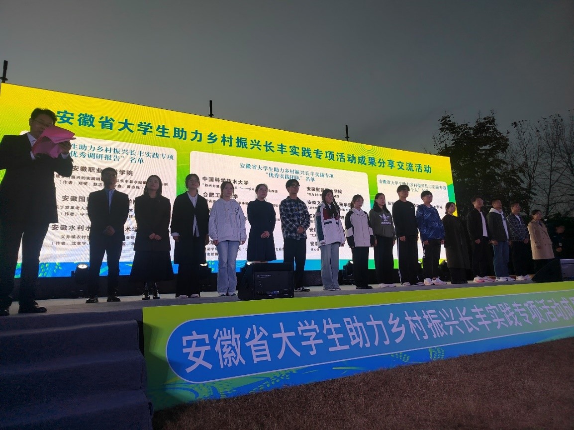 11月8日下午,安徽省大学生助力乡村振兴长丰实践专项活动成果分享交流在长丰县杨庙镇马郢村举办,公共安全与应急管理学院岗集应急与科普实践队从安徽省36支高校团队中脱颖而出,荣获安徽省大学生助力乡村振兴长丰实践专项“优秀实践团队”称号,辅导员许晓鹏代表高校教师作成果分享发言。