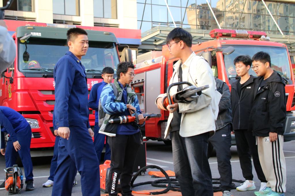 消防救援大队陶队长向师生们到来表示热烈欢迎,为师生们讲解了消防器械和消防知识,普及火灾的起因、预防措施以及火灾发生时正确的应对方法。同学们亲身试穿了厚重的消防服,体验了部分消防应急救援器材使用,登上了消防车……同学们深刻感受到:科技的发展让消防器材更智能、更高效、更具互联性和适应性,先进材料的应用使得消防器材更轻便、更耐用、更易于操作。