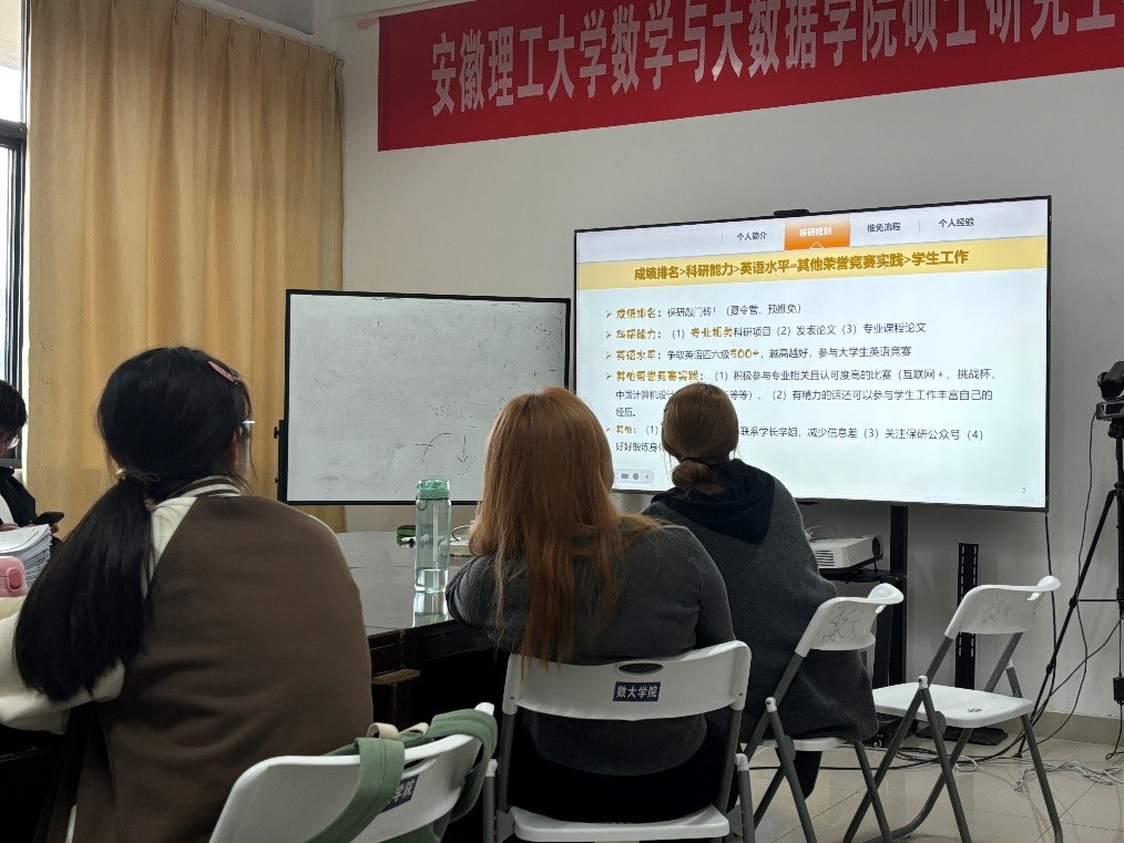 为帮助在校生更好地了解推荐免试攻读研究生的相关信息,充分发挥优秀保研生的示范引导作用,数学与大数据学院于11月14日成功举办了推免经验交流会。
