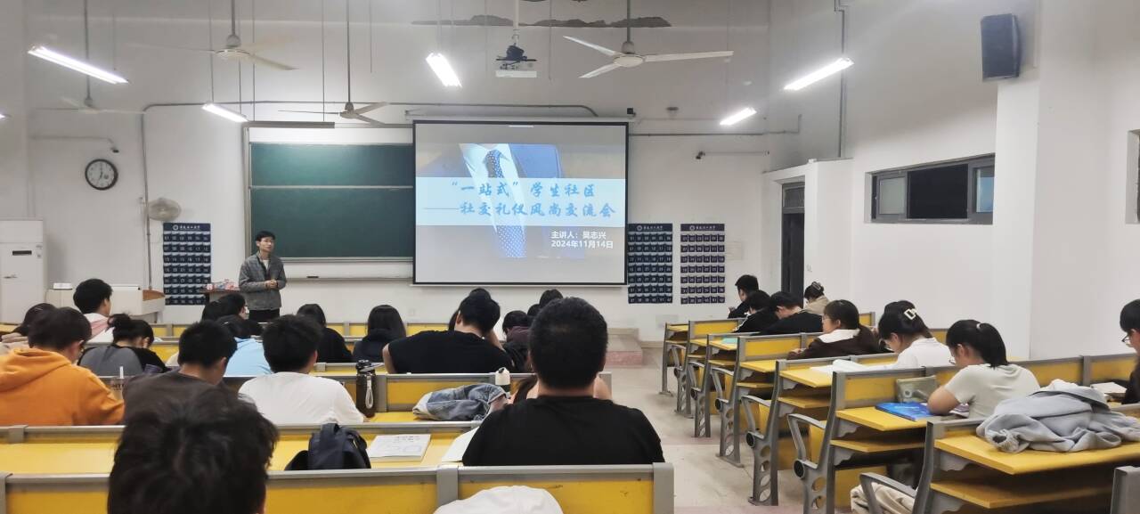 为帮助学生进一步掌握求职礼仪,提高就业竞争力,提前做好就业准备,11月14日,人文社会科学学院依托“一站式”学生社区面向全校同学开展求职礼仪交流会,本次交流会由学院辅导员吴志兴主持,全校各年级学生代表参会。