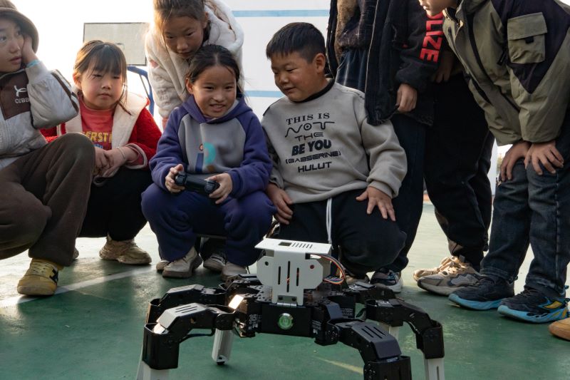 活动现场,我校大学生向小学生介绍机器人基本原理,展示机器人实物,指导开展实操;讲解航模知识,进行飞行表演,演示制作过程;示范折纸步骤,悉心逐个教学,一只只蝴蝶振翅欲飞。小学生的脸上洋溢着欢笑、好奇与满满的求知欲,大学生分享着知识、快乐与成长,提升了自我。