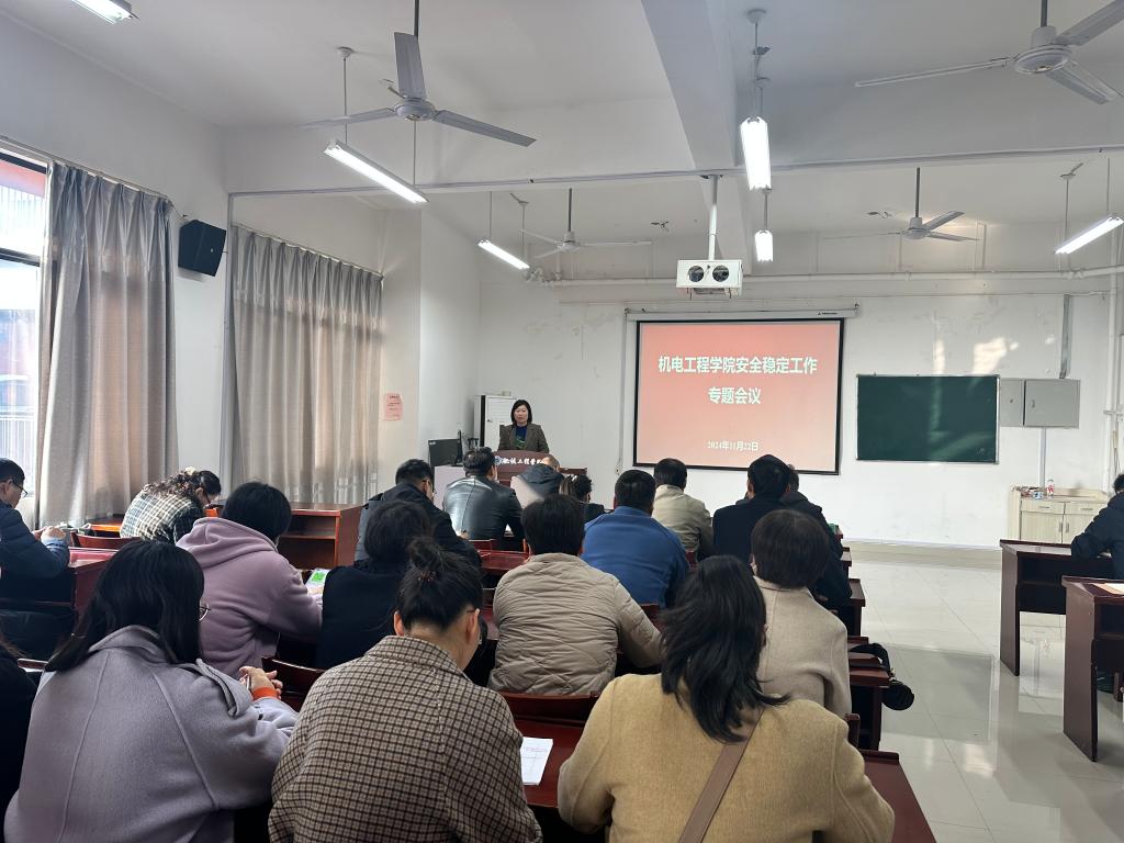 11月22日上午,机电工程学院在学院B403报告厅召开全院教职工大会,传达学校安全稳定工作专题会议精神,总结学院近期工作。会议由学院党委书记张岚主持,学院全体教职工参加会议。