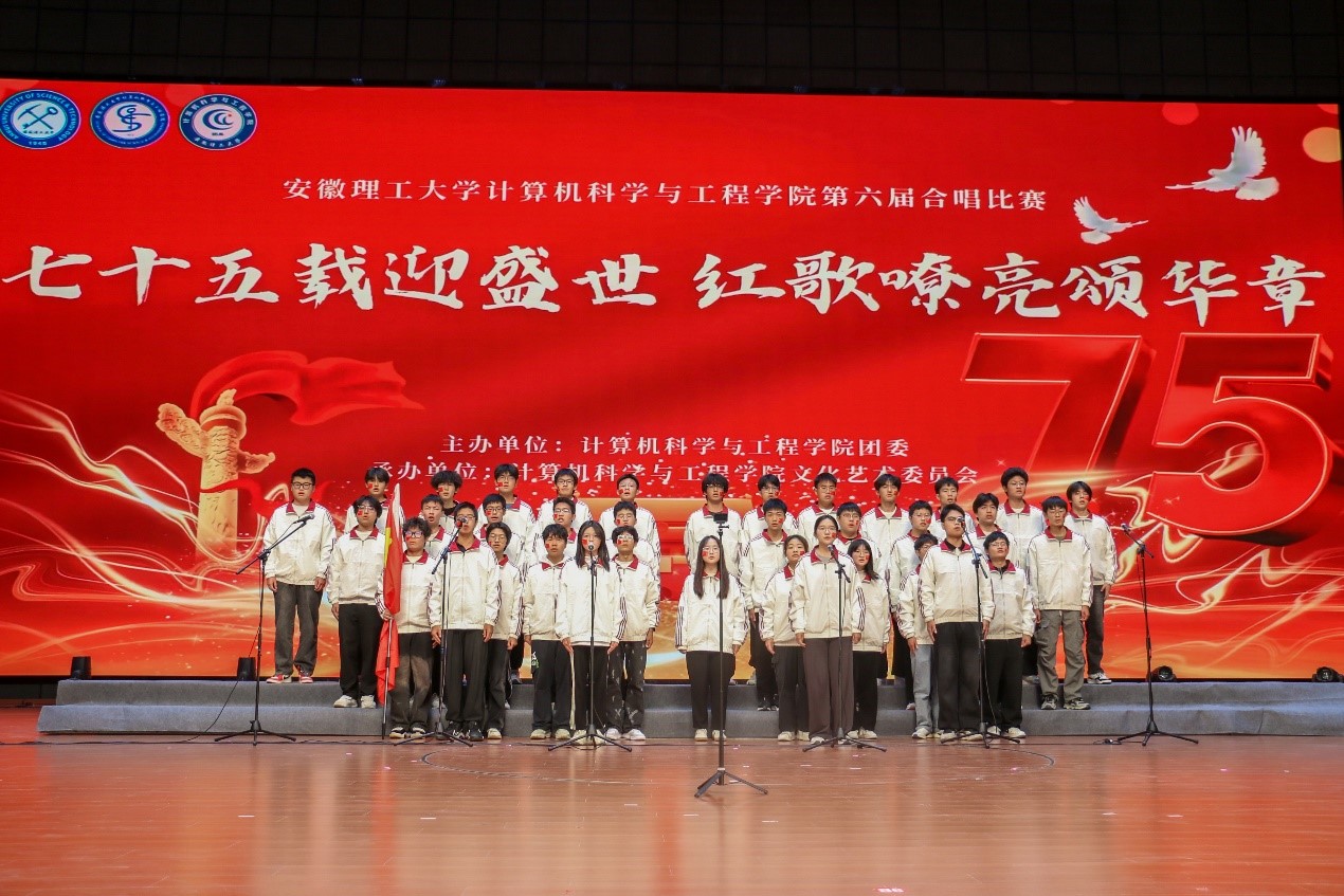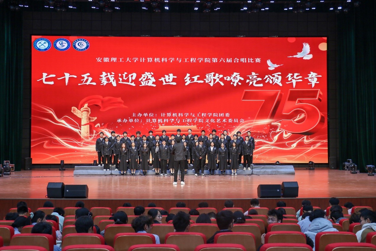 为庆祝中华人民共和国成立75周年,11月24日晚,计算机科学与工程学院在校大学生创新创业中心报告厅举办“七十五载迎盛世、红歌嘹亮颂华章”合唱比赛,2024级新生及其他年级学生代表共计1000余人参加了活动。