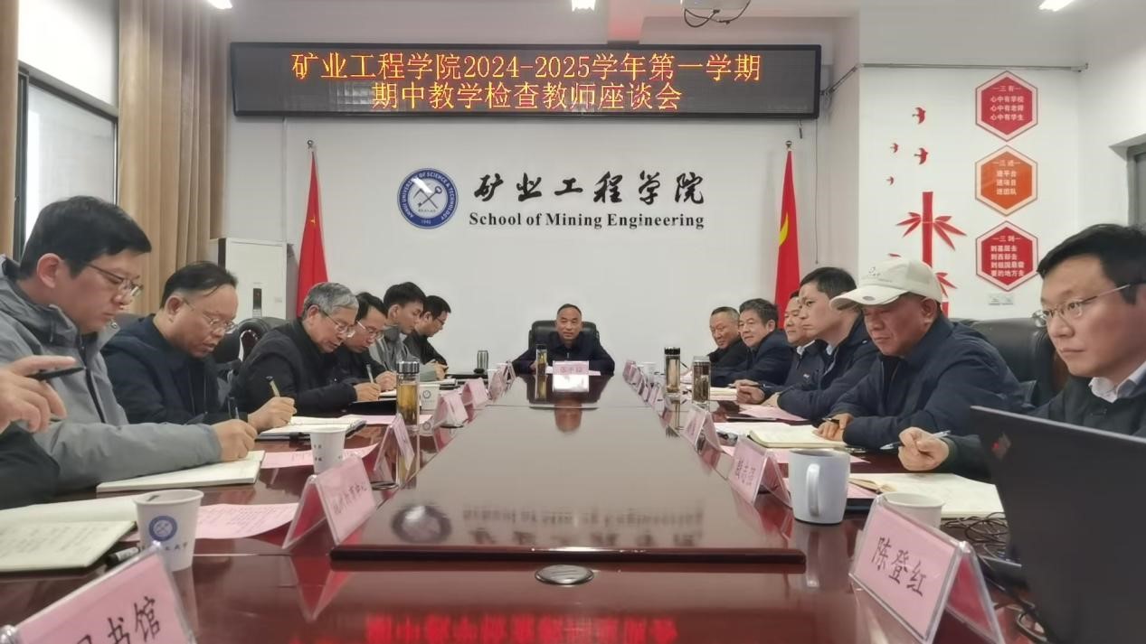 11月25日下午,矿业工程学院在宁远楼A406会议室召开2024-2025学年第一学期期中教学检查教师座谈会,校党委常委、副校长张平松出席座谈会,教务处、总务部、学生处、校团委、实验室设备处、图书馆、工程实训中心、现代教育技术中心等职能部门负责人共同参会听取学院一线教师的意见建议。座谈会由院党委副书记、副院长(主持工作)常聚才主持,学院领导班子成员、系主任和15名教师、辅导员代表参加了座谈会。