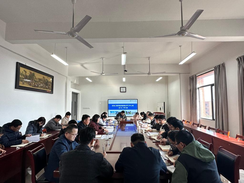 11月26日,机电工程学院在学院A433会议室召开党委理论学习中心组(扩大)会议,专题学习省委十一届八次全会精神。学校2024年基层党组织理论学习中心组学习列席旁听第八工作组,人工智能学院党委书记张旸一行到会旁听指导。学院党委委员、全体党支部书记等20余人参加会议。会议由学院党委书记张岚主持。