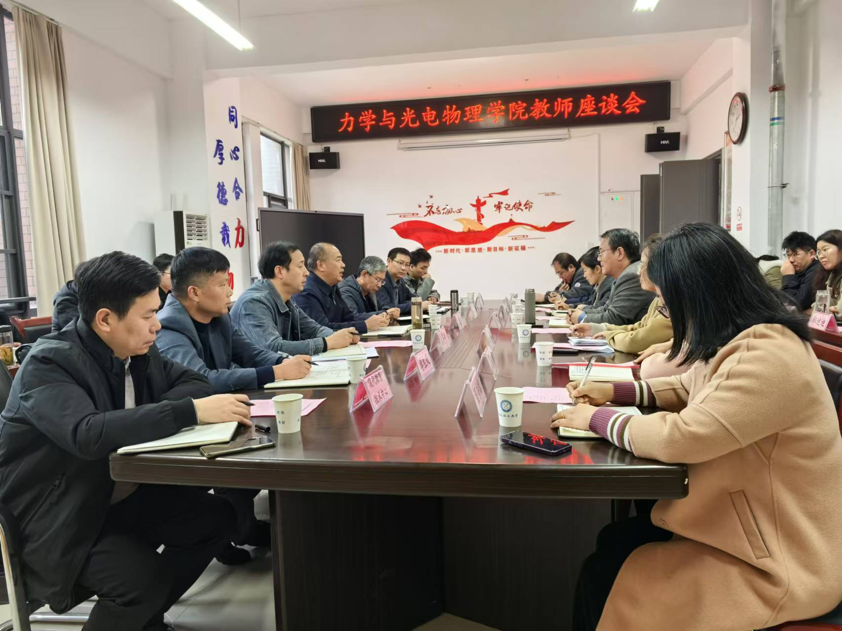 会上,王先江耐心听取了教职工代表的意见和建议,并就教职工所关心的议题进行了回应解答。他首先对力学与光电物理学院在全校基础课程教学中的重要作用表示认可,并对学院教师的辛勤工作表示诚挚的感谢。他强调,学校职能部门应秉持“服务学院、师生至上”的宗旨,全力支持全校师生的发展。同时,王先江针对学院教师办公环境、科研实验设备不足、校园安全、学生经费不足、课堂纪律管理以及公共教学区域维护等关键问题进行了细致的解答,并要求学院党委强化在校园安全方面的责任,积极预防和消除各类安全隐患。
