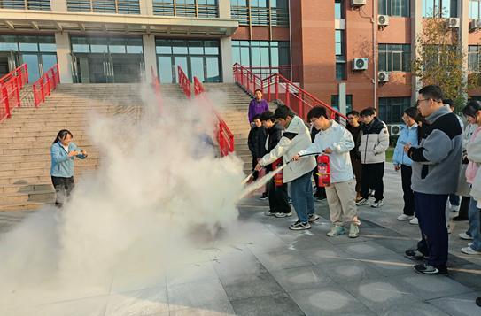 接着,消防员设置了模拟火源,向师生们演示了正确的灭火操作步骤:拿起灭火器,拔出保险销,站在火源的上风方向,对准火焰根部用力按下灭火器把手,喷射灭火剂进行灭火。在消防员的指导下,同学们轮流使用灭火器灭火,实战掌握灭火技巧。