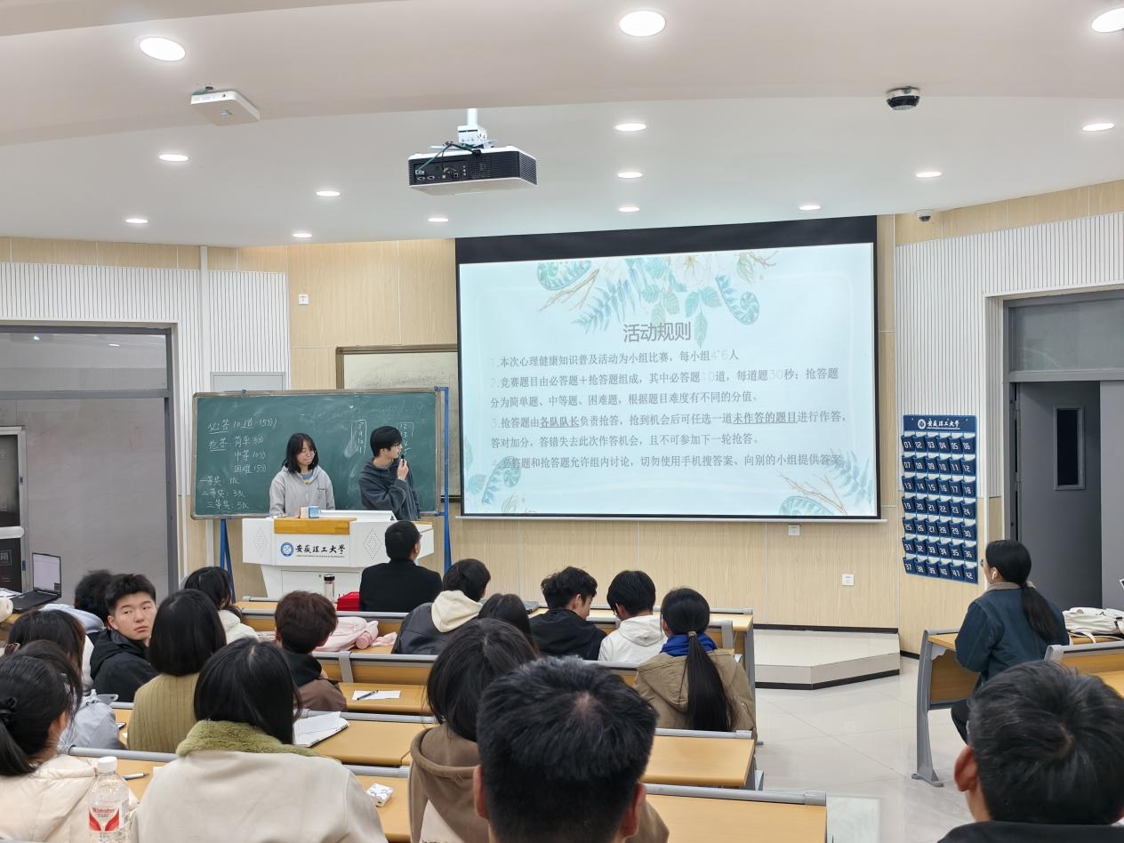 为了引导学生主动关注心理健康知识,提升心理健康保护意识,在全院学生中营造积极健康的心理交流环境,促进学生相互理解、友爱互助,人工智能学院于11月26日晚在耕心楼111教室举办了“心理健康知识普及大赛”。此次大赛共吸引近80名同学报名参加,他们根据自愿组队原则分成15队展开公平竞技。