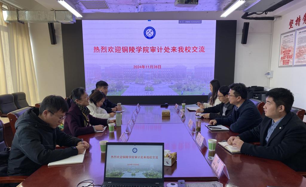 11月28日下午,铜陵学院审计处负责人一行5人来我校调研交流。校审计处负责人与其在行政楼529会议室进行座谈交流。