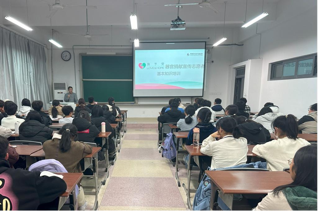 11月27日晚,由中国器官移植发展基金会指导,安徽省红十字会遗体(器官)捐献中心安理大接受站主办,施予受公益社团承办的高校人体器官捐献宣传志愿者培训活动,在明理北楼301教室开展。