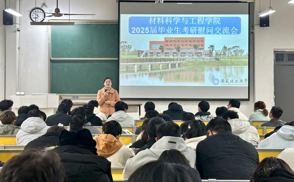为给奋力备考的2025届本科毕业生加油助威,舒缓考研紧张情绪,帮助解决备考过程中遇到的实际困难,增强考研信心,11月29日,材料科学与工程学院在明理102教室开展2025届毕业生考研交流活动。学院党委副书记陈向君、副院长程国君、各专业教师代表、毕业班辅导员和2025届考研学生代表参会。
