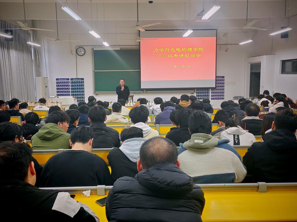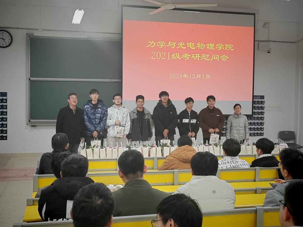 12月1日下午,在2025年硕士研究生入学考试即将来临之际,力学与光电物理学院在明理南112教室举办考研慰问大会。学院党委书记孙东升、党委副书记郑孝莲、2025届毕业年级辅导员参加慰问活动,共同为考研学子送上温暖与祝福。