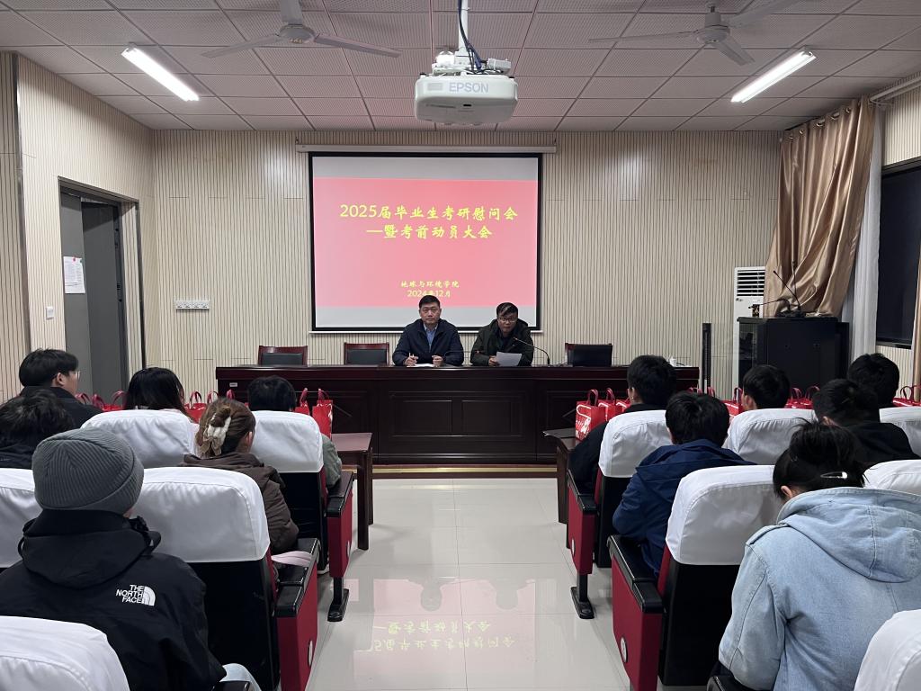 12月4日,地球与环境学院在静远楼B406举办考研慰问会,为备战考研的学子加油鼓劲。学院领导班子成员、毕业班辅导员参加了会议。