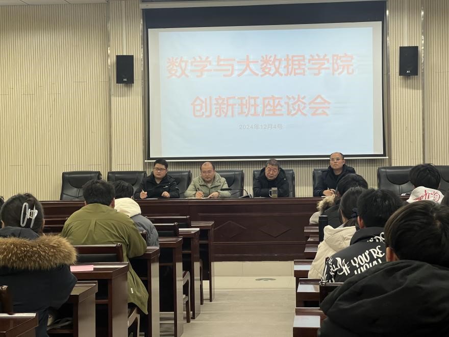 12月4日,数学与大数据学院在明道楼一楼报告厅举办数大学院“程乃栋数学创新班”座谈会。学院院长赵前进、副院长耿显亚、各专业系主任、创新班辅导员和全体创新班学生参会。