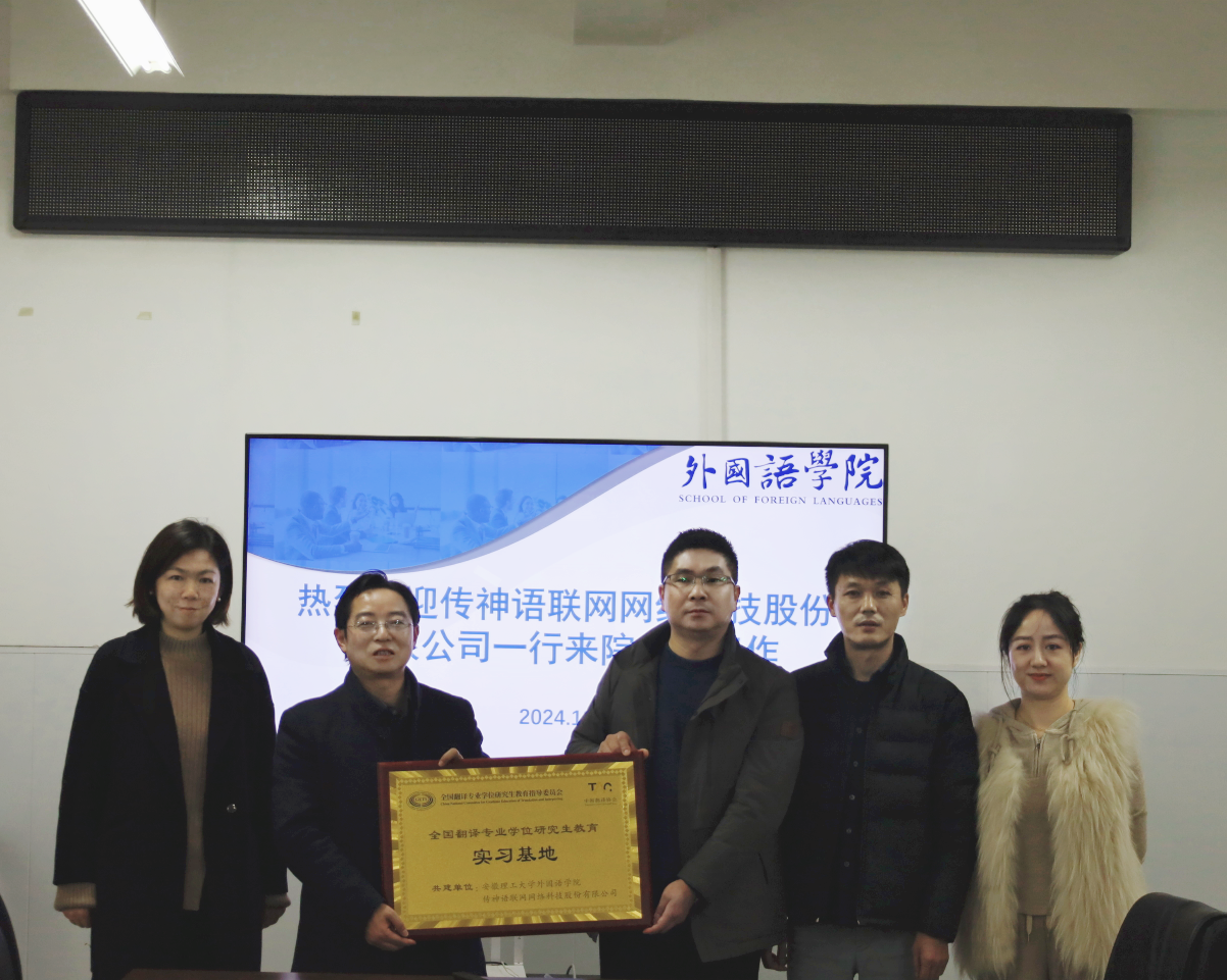 近日,全国翻译专业教指委、中国译协公布了全国翻译专业学位研究生教育实习基地认证名单,由外国语学院和传神语联网网络科技股份有限公司联合申报的翻译专业学位研究生教育实习基地顺利获批。