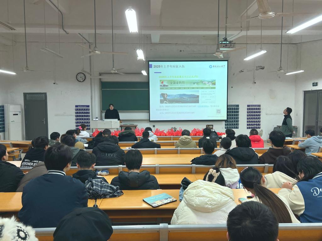 12月3日,计算机科学与工程学院在天工106面向2025届毕业生召开征兵动员会,动员会上学院征兵联系人陈卓就征兵报名流程、应征入伍后学生的生涯发展等,谈理想、讲发展、促就业,为学生做了一次生动的“征兵——生涯规划课”。会后,指导有意向的同学现场报名,做到“一站式”服务。