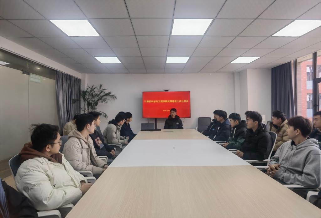 计算机科学与工程学院注重优秀士兵服役经历的挖掘,致力于讲好优秀退役士兵青春故事,用一批人的故事激发另一批人的参军热情,12月7日,学院邀请优秀退役士兵胡振飞进校“一站式”学生社区,分享了自己的军营故事。在分享会中,胡振飞动情地说道:“我从不后悔应征入伍,如果重来一次我依旧会这样选择”。分享会上同学们聚精会神,掌声不断。