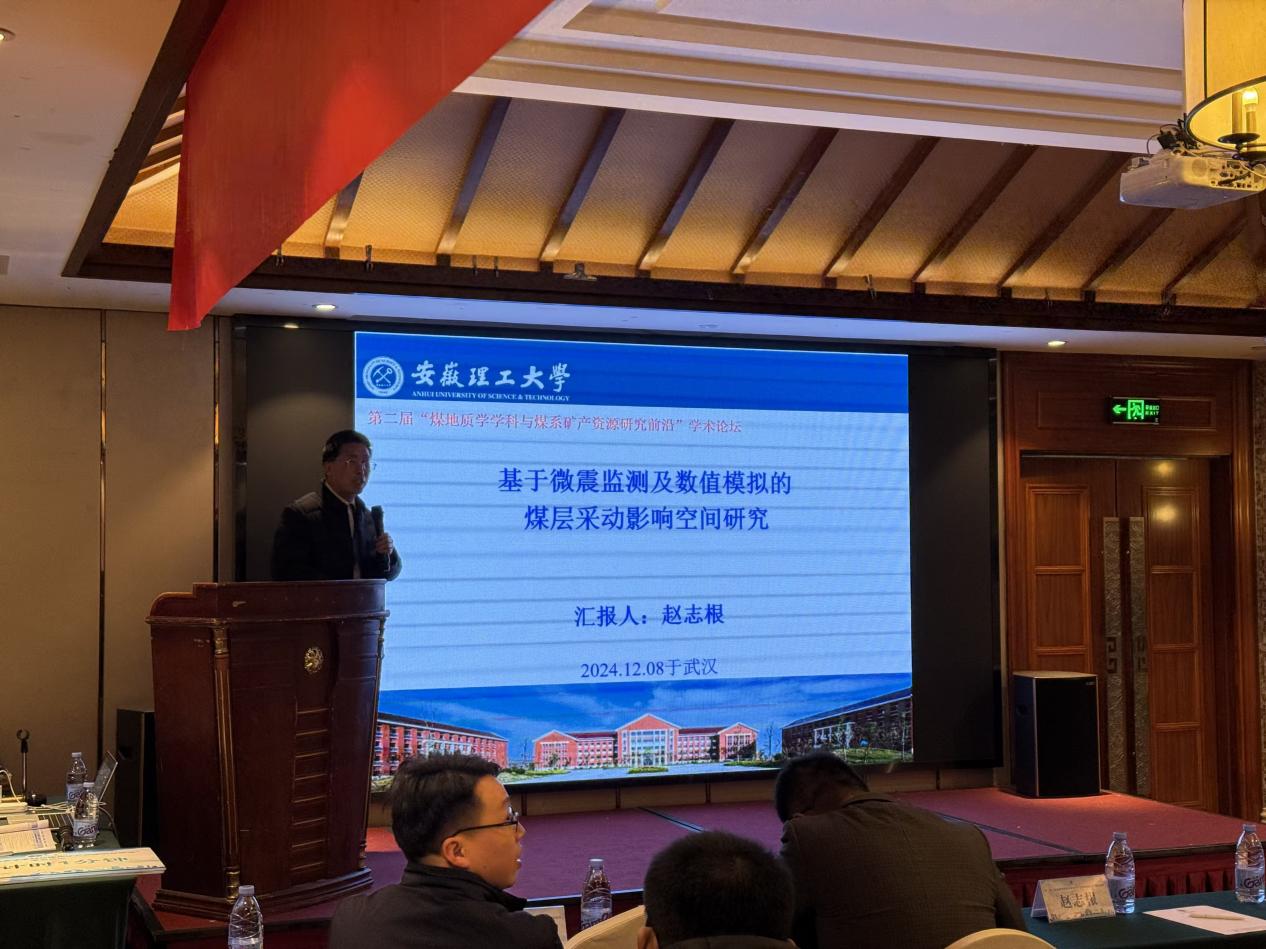 赵志根教授在煤炭三化(数字化、智能化、绿色化)开采进展专题会场,作了题为“基于微震监测及数值模拟的煤层采动影响空间研究”的学术报告,以关闭煤矿瓦斯治理与利用为背景,从微震监测和数值模拟两个角度分析了煤层采动影响空间,总结了两淮煤田的煤层群开采特征,预测了煤层群条件下煤层采动影响的空间分布规律。