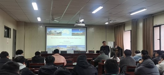 卢春生教授从论文的命题、框架构建、写作用语、期刊投稿、论文修改等方面分享了一些知识和经验,并结合一些具体案例介绍了论文写作及投稿中应避免的问题和注意事项。随后介绍了自己在灾难性破裂和自然灾害预测方面的相关研究工作,结合地震和岩爆等案例,重点探讨了在材料失效和自然灾害发生之前如何立即找到一个可靠的前兆或关系。同时与参会同学深入交流了一些科研工作方面的感悟,并欢迎师生到澳大利亚科廷大学访学、联合培养。