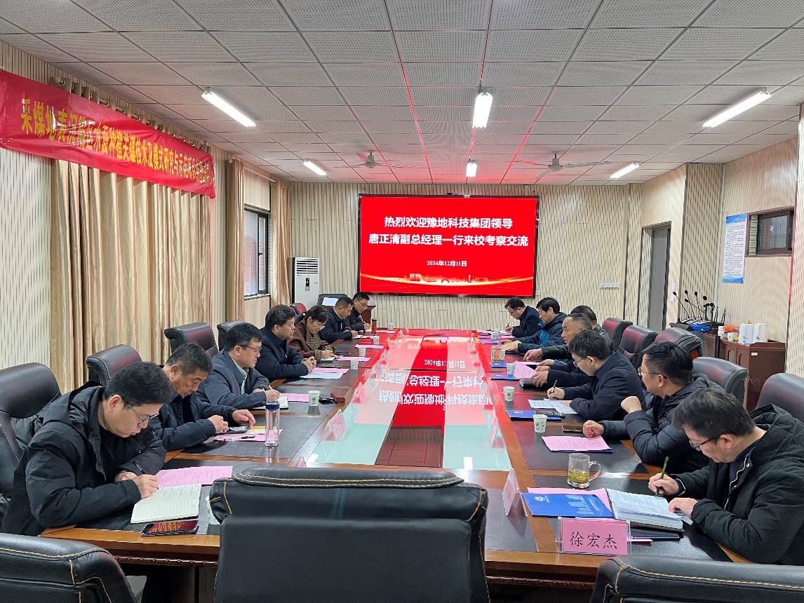 12月11日,河南豫地科技集团有限公司副总经理唐正清一行到访学校,校党委常委、副校长张平松,大国工匠朱恒银教授参加交流会,会议由地球与环境学院院长刘启蒙主持。