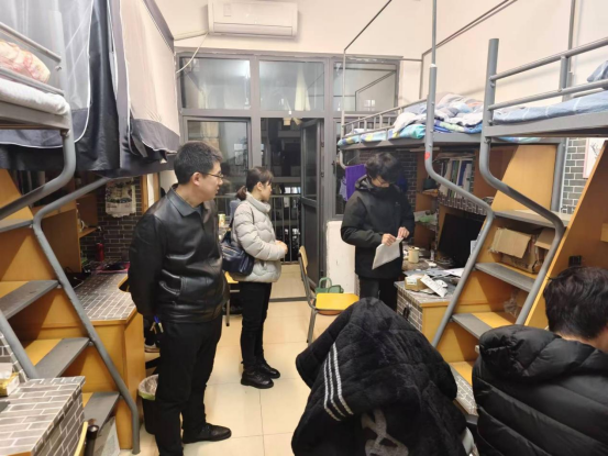 12月10日至11日,学院领导班子、全体辅导员对学院学生寝室进行了全面检查,督促学生营造干净、整洁、文明、安全的宿舍生活环境和良好的学习氛围。本次检查重点排查了学生宿舍环境卫生维护、违规电器使用、电线私拉乱接等情况。排查过程中,再次向同学们普及消防安全注意事项,讲解宿舍消防安全的重要性和造成不良后果的严重性,希望全体同学要遵守宿舍管理各项规定。走访过程中,学院领导亲切关心2024级新生在校适应情况,督促其他年级学生抓紧学期末的学习时段,为本学期学习生活交上满意答卷,了解询问了毕业班同学实习、就业情况,并鼓励考研学子放平心态,进行适当身体锻炼,以最好的状态迎接考试。