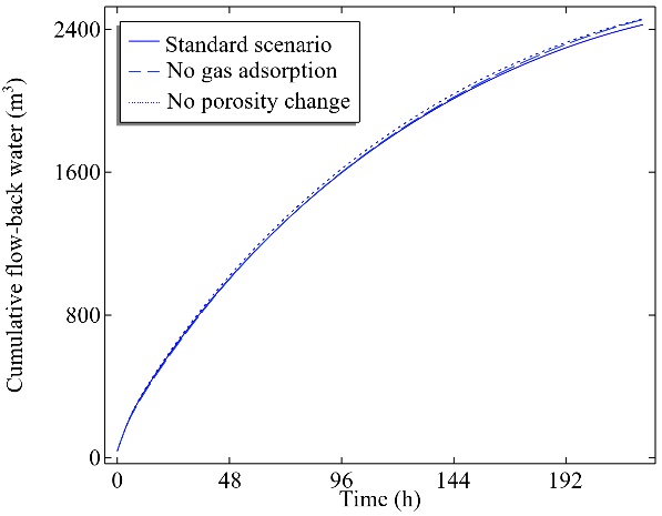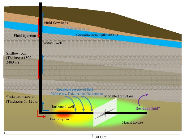 该研究扩展了混合耦合理论,推导了可变形裂隙介质中吸附性多相流的多场耦合本构关系和控制方程,并进行了实际页岩气场地数值模拟。该模型准确地预测了页岩气井多相返排行为,确定了不同耦合效应对返排行为的作用机制及其定量影响,对页岩气储层的多相返排提供了新的见解。该模型也可应用于其他裂隙介质中多相流研究如二氧化碳储存和煤层气生产等。