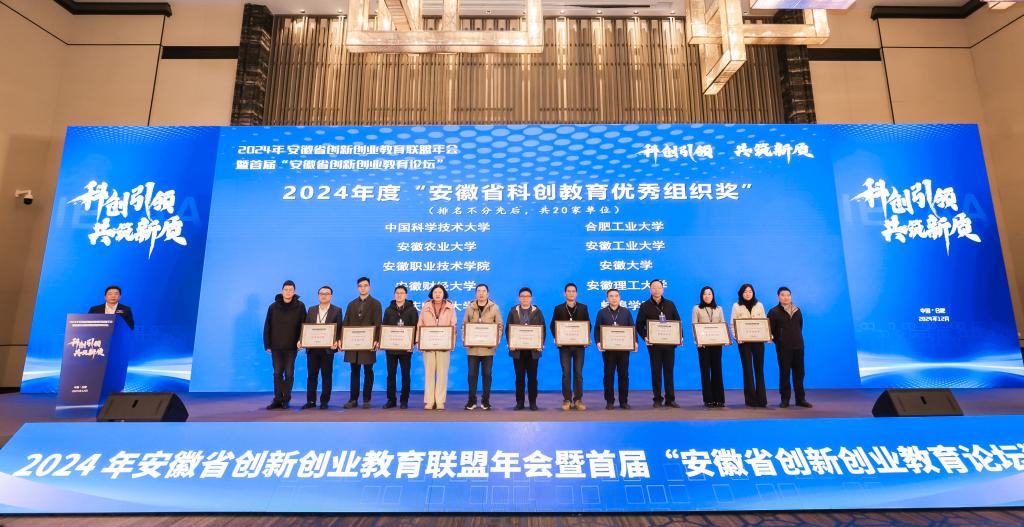 12月24日,2024年安徽省创新创业教育联盟年会暨首届“安徽省创新创业教育论坛”在合肥举行,省教育厅、人社厅相关领导出席活动,省内高校、知名企业、投资机构、科创园区等64家成员单位代表参加活动。创新创业学院负责人应邀出席会议,学校荣获2024年度安徽省科创教育优秀组织奖。