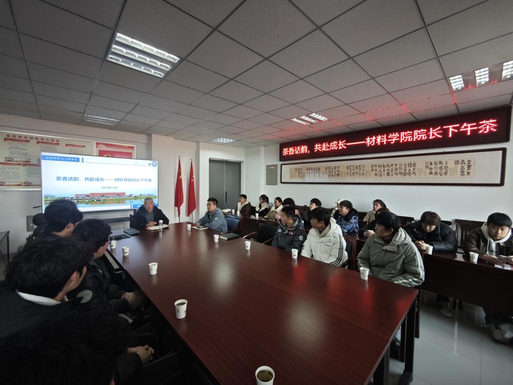 为着力推进“三全育人”教育,聚焦大一学生全面发展,切实给予学生学业帮扶指导,12月26日下午,材料科学与工程学院在崇义楼B118会议室举办“院长下午茶”活动,院长闵凡飞、2024级学生代表以及辅导员参加本次活动。