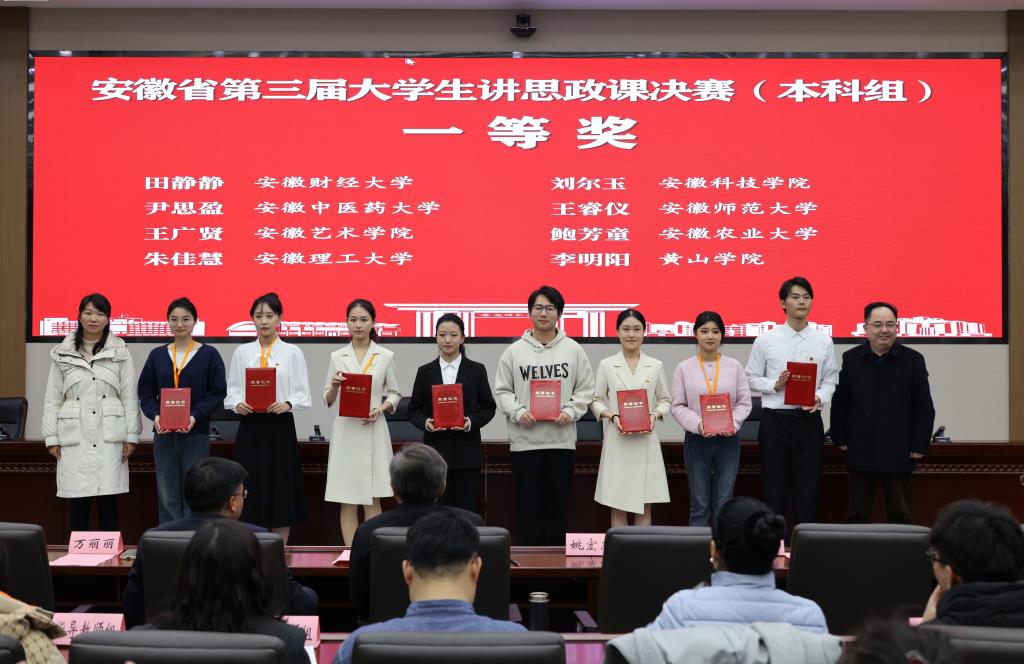 12月25日,由中共安徽省委教育工委主办,教育部高校思想政治工作队伍培训研修中心(安徽师范大学)、安徽师范大学马克思主义学院承办的第三届安徽省大学生讲思政课决赛在芜湖举行。经过激烈角逐,我校人文社会科学学院朱佳慧同学团队荣获决赛一等奖,代先祥、赵红丽获评优秀指导教师。