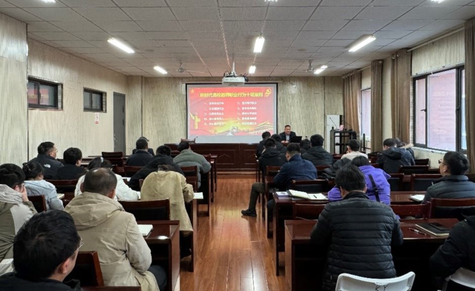 坚守育人初心,筑牢师德底线。学院党委书记常聚才给全体教工党员上师德师风教育专题党课,重点讲述了习近平总书记关于师德师风的重要论述、《新时代高校教师职业行为十项准则》《研究生导师指导行为准则》以及《安徽理工大学党员干部“八小时外”行为监督管理办法(试行)》等内容,要求学院全体教师自觉坚持师德师风第一标准,先“立己德”后“树人德”,争做“四有”好老师。