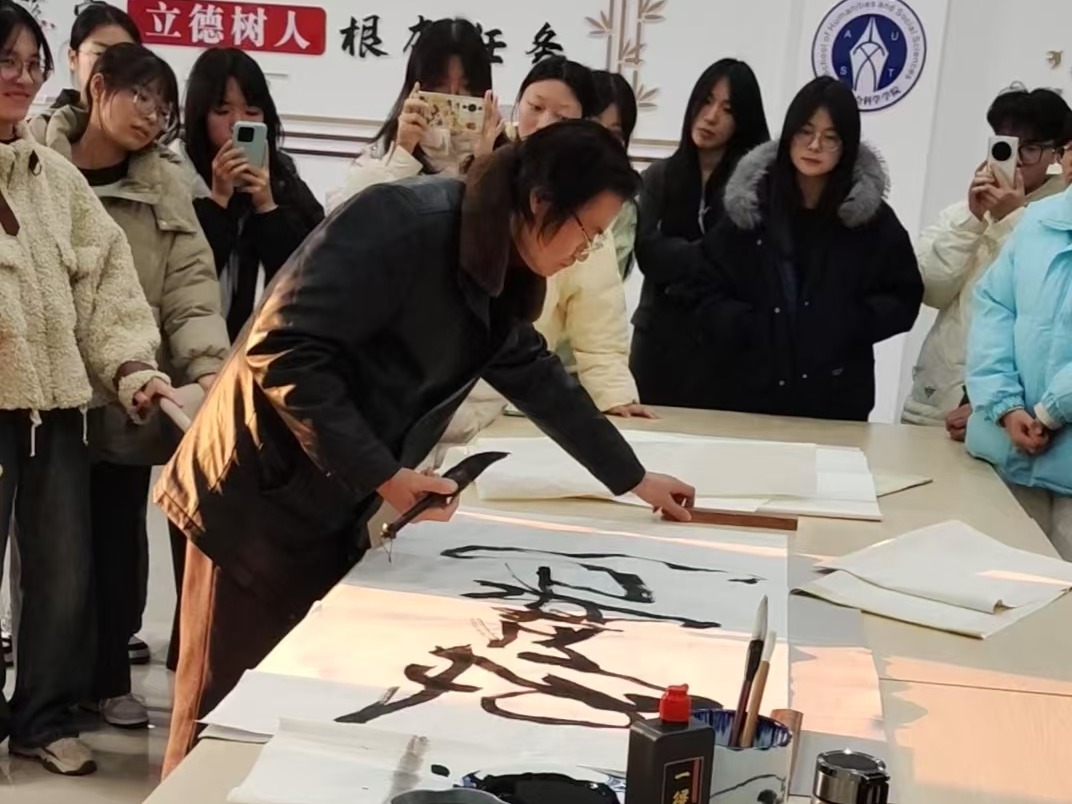 为了丰富学生们的第二课堂,提高同学们书法艺术欣赏和创作水平,指纹画创始人、淮南指墨画馆馆长杨建立近日应邀来校,指导人文社会科学学院动画专业学生开展实践教学活动。