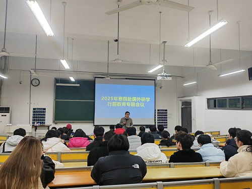 1月3日下午,国际交流与合作处在天工北教学楼102教室召开2025年寒假赴国外研学行前教育专题会议。国际交流与合作处处长王宗华对即将参加出国研学项目的师生进行了出国前的安全教育。